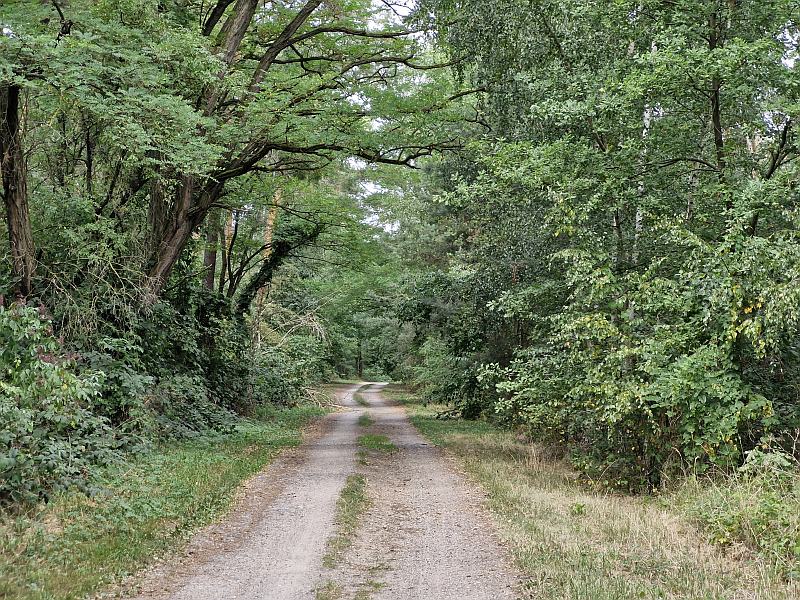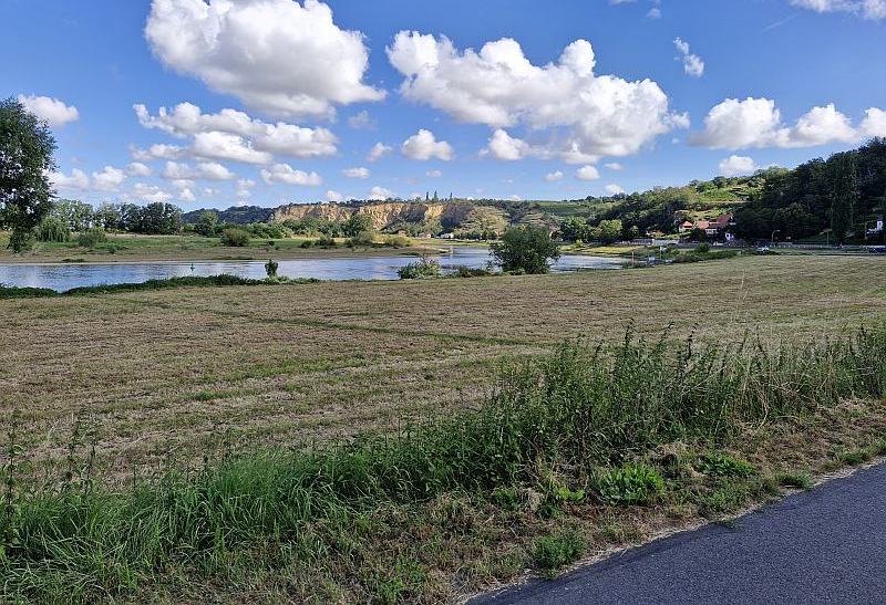 Es ist jetzt Halbzeit auf meiner Fahrradtour; ab morgen geht es auf der anderen Seite zurück. In Tschechien gibt es von der Grenze bis nach Decín nur diesen einen Weg, deshalb fahre ich bis zur Grenze den Weg auch zurück. Hier verläuft manchmal ein kleines Rinnsal, ist aber ausgetrocknet.